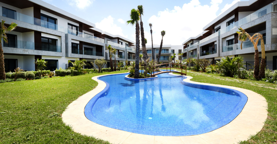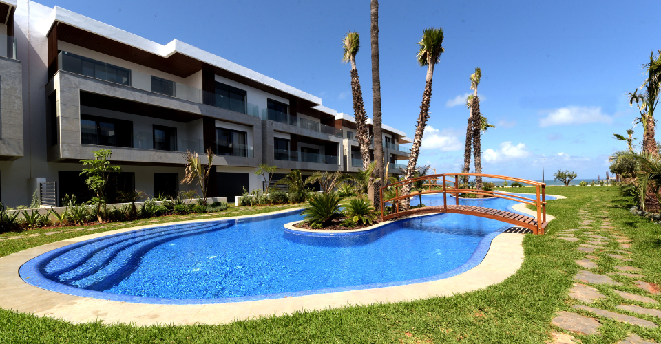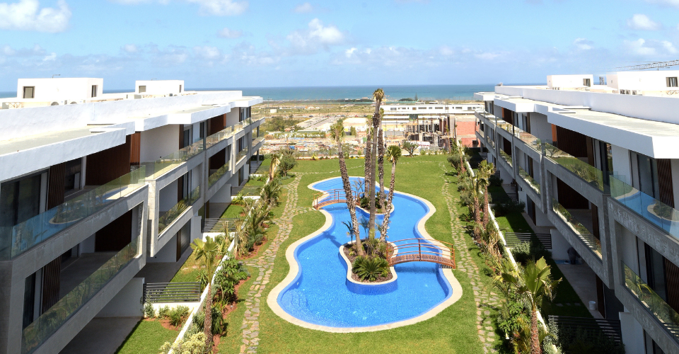 LE GRAND BLEU - APPARTEMENTS VOTRE RÉSIDENCE PRINCIPALE AVEC VUE SUR MER À 3 MIN DU MOROCCO MALL LARGES ESPACES VERTS AMÉNAGÉS GRANDES PISCINES CENTRALES